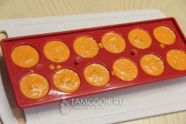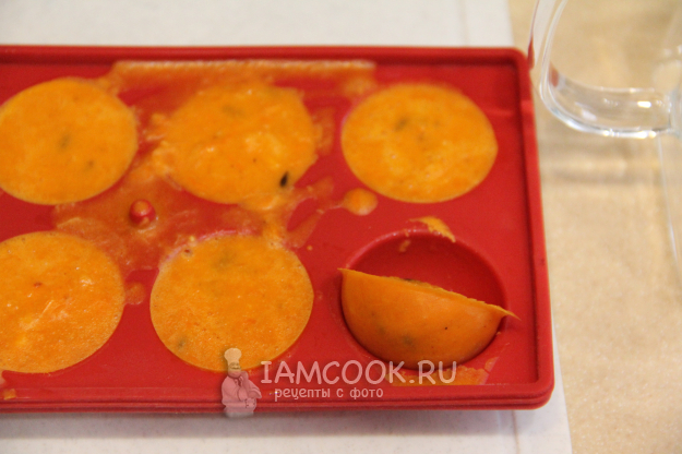 Разлить ягодную массу по силиконовым формочкам, у меня полусферы. Можно использовать формочки для льда.