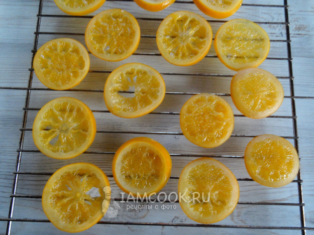 Если готовите не на решётке, то возможно, потребуется перевернуть апельсины во время сушки.