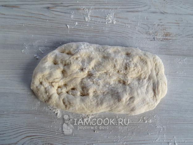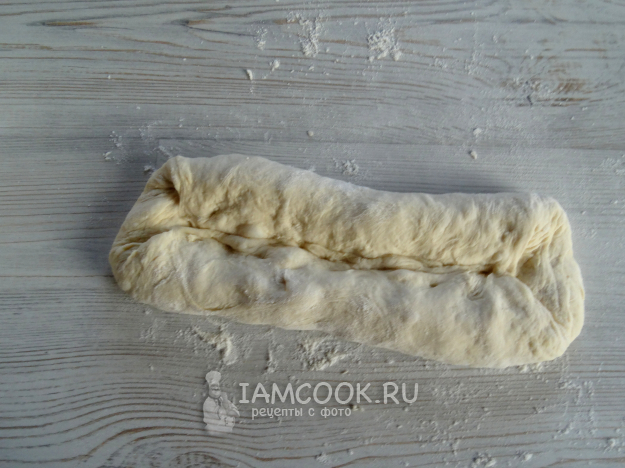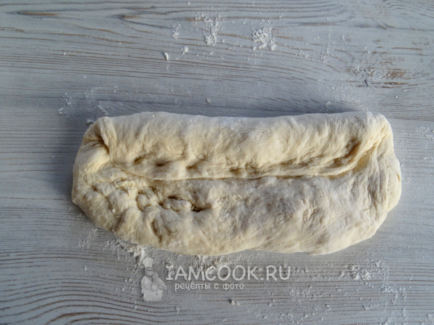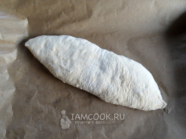 Переложить тесто на противень с бумагой или ковриком, швом вниз.