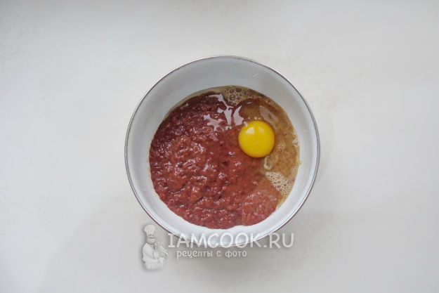 Лук репчатый очистите, помойте. Пропустите лук и печень через мясорубку или измельчите в блендере. Добавьте яйцо.