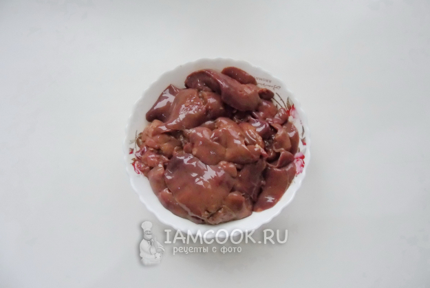Куриную печенку помойте, удалите прожилки и сгустки крови.