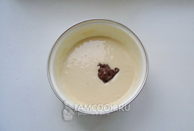 Какао-порошок перемешайте с небольшим количеством молока и добавьте в тесто.