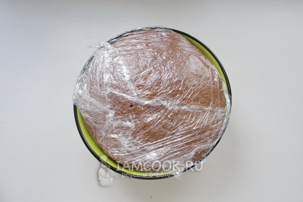 Поднимите края пленки и накройте торт. Отправьте в холод на несколько часов. Можно на ночь.