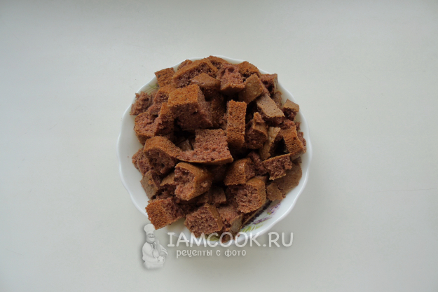 Оставшиеся части коржа нарежьте небольшими кубиками.