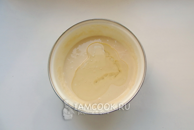 Добавьте рафинированное подсолнечное масло и снова перемешайте тесто.