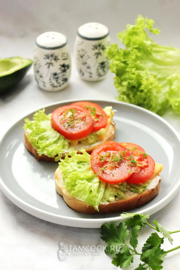 Соберите ингредиенты для приготовления бутербродов с авокадо, сыром и помидором.