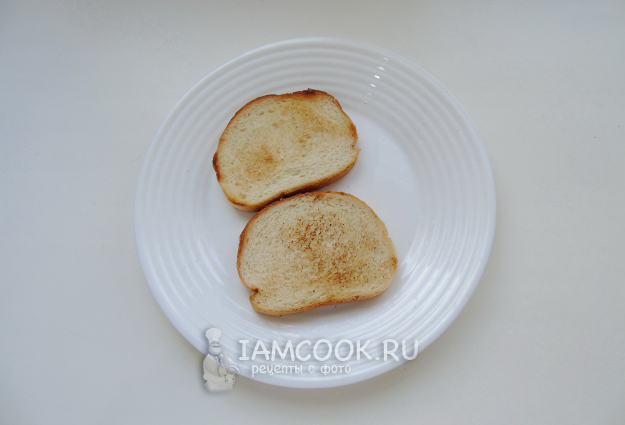 Ломтики батона поджарьте на сухой сковороде или в тостере.