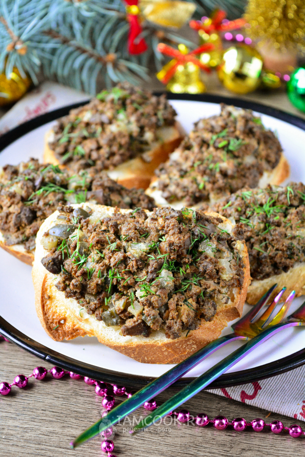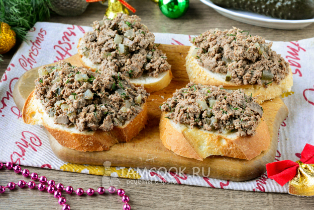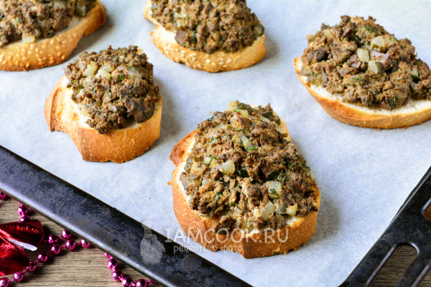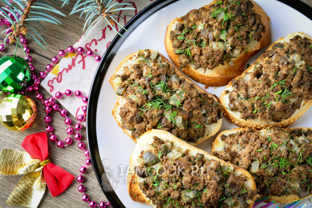 Горячие бутерброды с печенью сразу подавайте к праздничному столу.