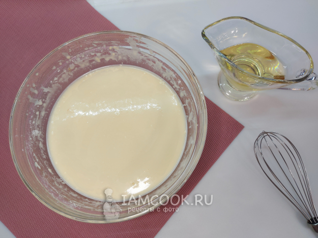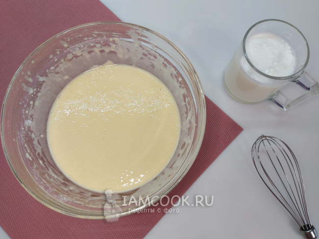 Добавляю муку, хорошо перемешиваю миксером или ручным венчиком - так, чтобы не осталось комочков.