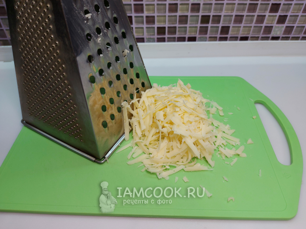 Пока остывают блины и фарш, натираю сыр на крупной тёрке.