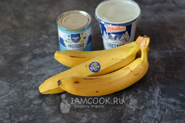 Соберите ингредиенты для бисквитного торта со сгущенкой и бананами.