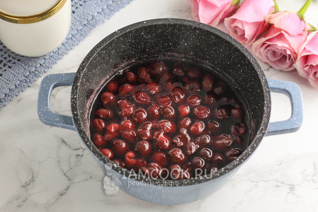 Проварите все вместе примерно 10-12 минут. Сироп должен стать бордовым, насыщенным.