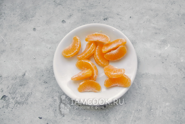 Мандарины помойте, очистите от кожуры и белых волокон.