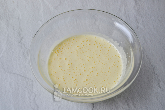 В миску со взбитыми яйцами просейте 2-3 ст.л. муки. Аккуратно, движениями снизу вверх, вмешайте муку в яичную массу.