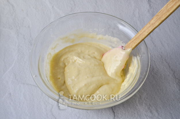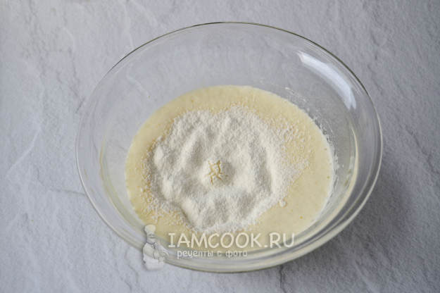 В другой миске соедините муку с разрыхлителем. Перемешайте.