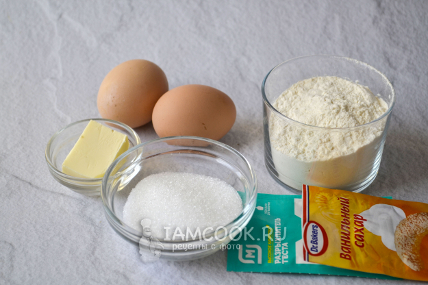 Соберите продукты для приготовления сладкого рулета на сковороде (без духовки).