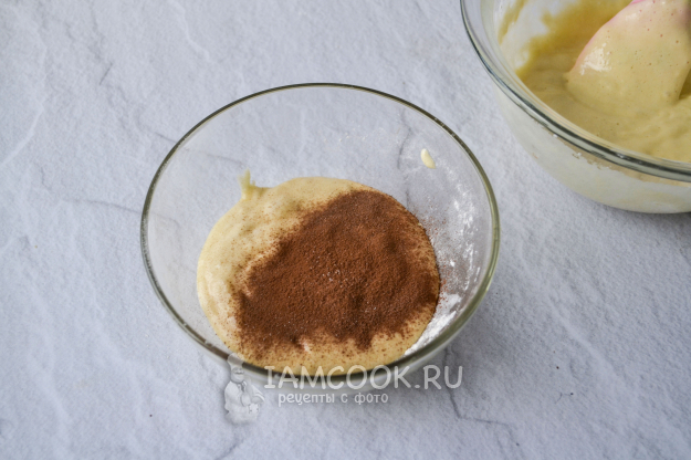 Так же аккуратно вмешайте какао-порошок в тесто.
