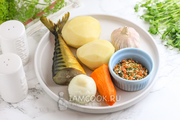 Продукты для приготовления рыбного супа с копченой рыбой (скумбрией) - перед вами!