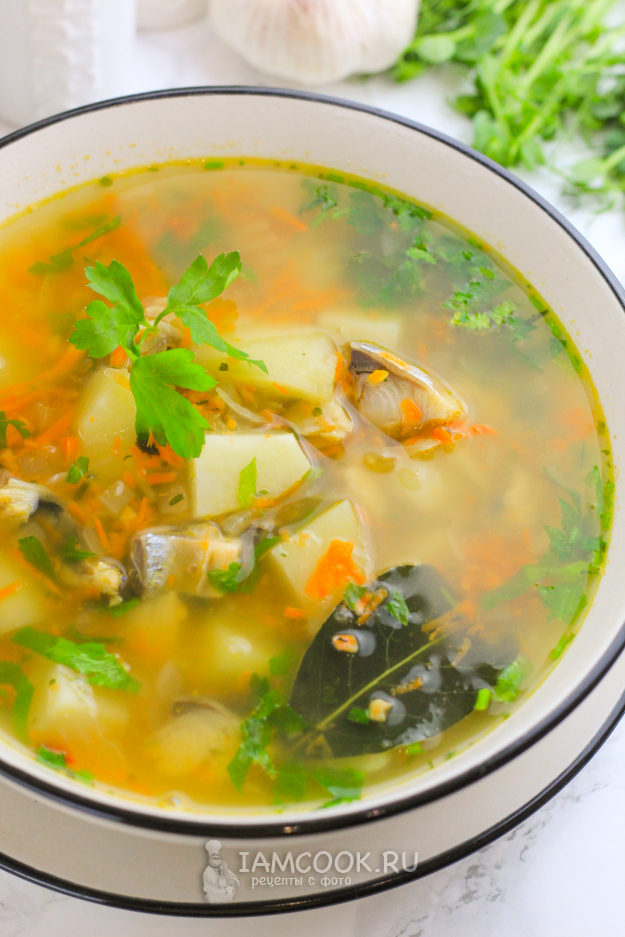 Вкусный наваристый суп можно приготовить и из копченой скумбрии, мойвы и т.д. Выбирайте рыбу с минимальным количеством костей, которые легко удаляются. Добавляется она практически в самом конце, когда овощи уже будут готовы. По желанию вы можете дополнить суп другими овощами, специями или пряностями. Я предпочитаю петрушку, но суп вкусен и с укропом, зеленым луком, шпинатом и т.д. Подавайте его со сметаной или майонезом, чесночным соусом. А еще не забудьте про сухарики или гренки!