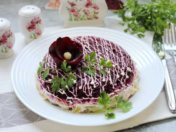 Перед подачей «Селедке под шубой» с копченой скумбрией надо настояться в холодильнике пару часов.