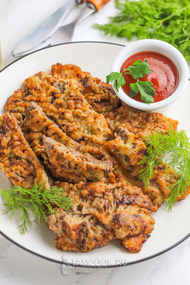 Взбейте в глубокой емкости куриные яйца с солью и перцем и обмакните мясо в яичную массу.