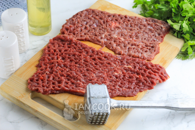 Отбейте каждый из них сначала стороной молоточка с широкими выемками, а потом - с мелкими.