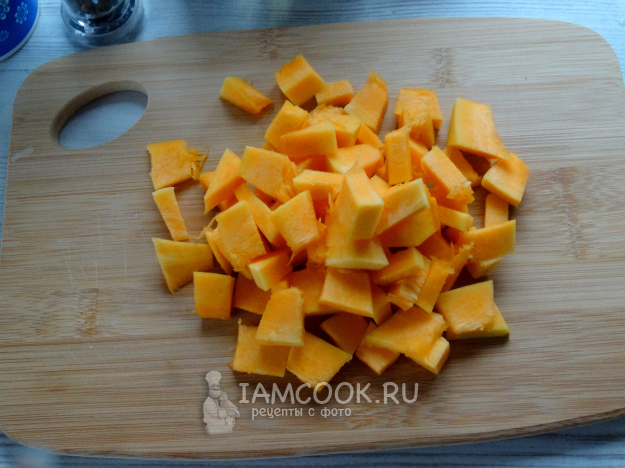 Накрыть крышкой и тушить на среднем огне до мягкости тыквы, примерно 12 минут.