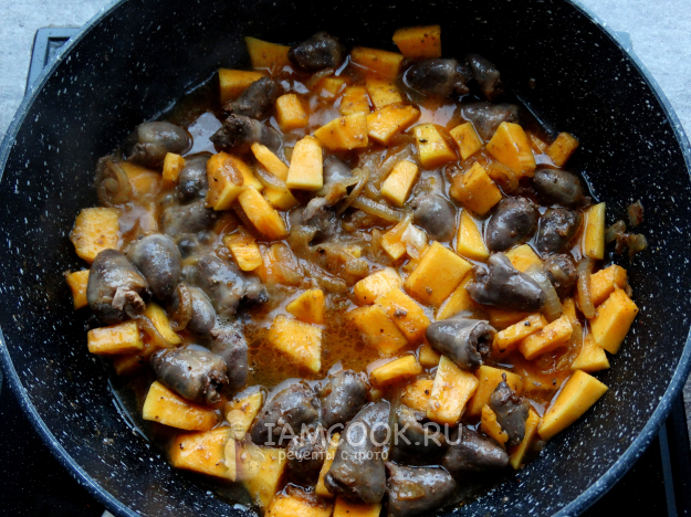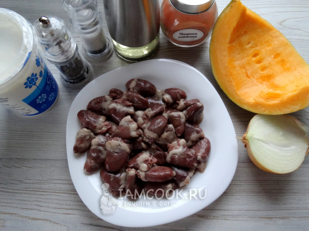 Куриные сердечки с тыквой готовить будем из такого набора продуктов.