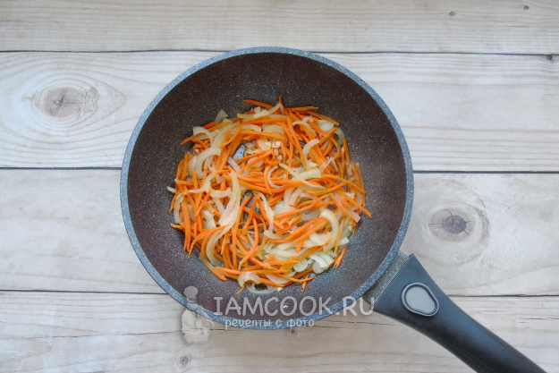 Тушите морковь с луком перемешивая, 5-6 минут.