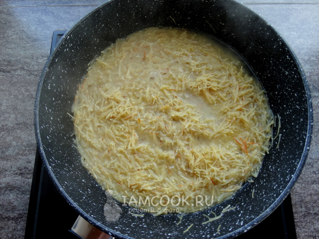 Перед подачей можно посыпать вермишель тёртым твёрдым сыром.