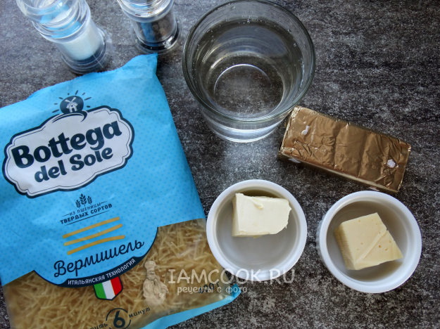 Вермишель с сыром на сковороде будем готовить из таких ингредиентов.
