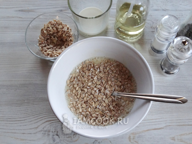 Всыпать овсянку, перемешать и оставить минимум на 10 минут.