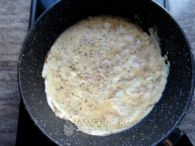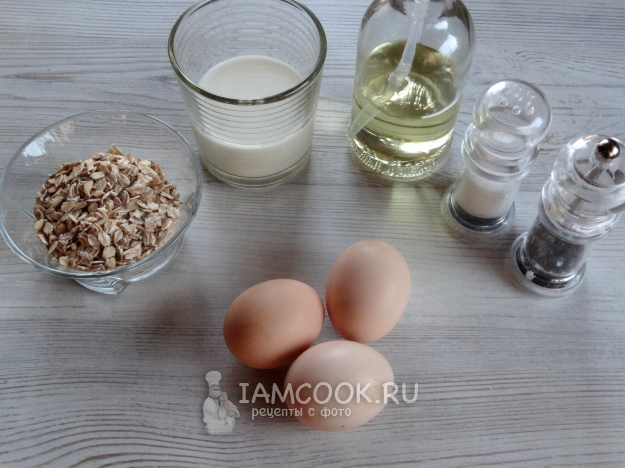 Возьмите необходимые ингредиенты, чтобы приготовить омлет с овсянкой на сковороде.