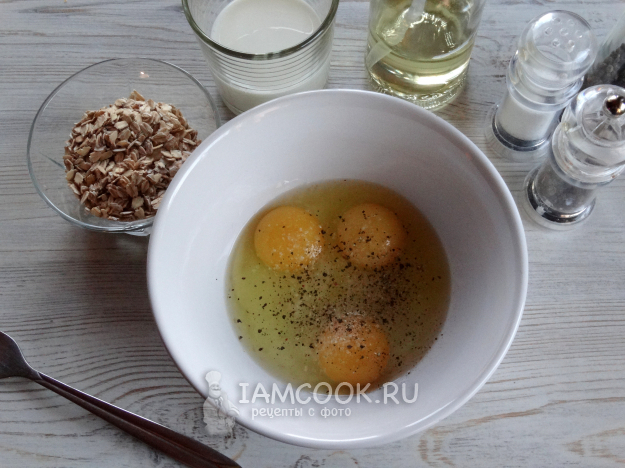 Яйца разбить в чашу, посолить и поперчить по вкусу.