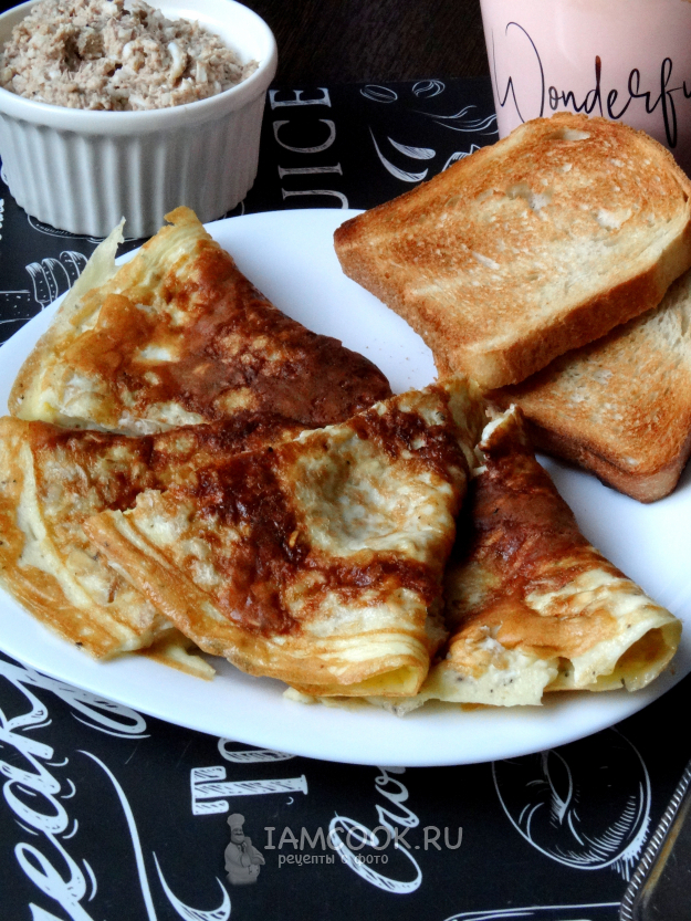 Вылить омлетную смесь на раскалённую сковороду с маслом.