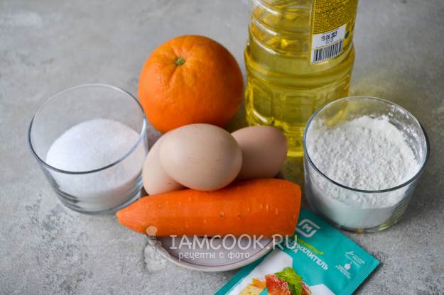 Соберите продукты для приготовления морковного кекса. Морковь очистите, апельсин вымойте горячей водой с содой.