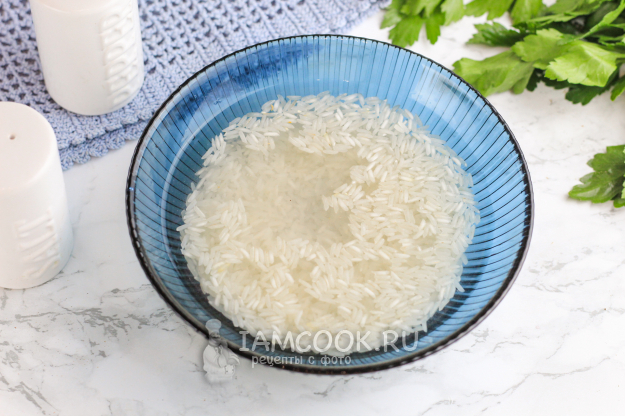Рис промойте несколько раз в холодной воде и слейте жидкость.