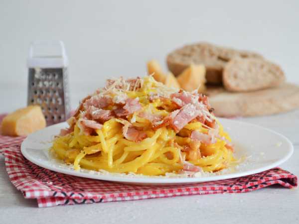 Для приготовления домашней пасты для спагетти рекомендую использовать муку из твердых сортов пшеницы, мелкого помола, с высоким содержанием белка. В тесто я не добавляю воду, замешиваю его исключительно на яйцах, с небольшим добавлением оливкового масла. Сладкую паприку добавляла для цвета.