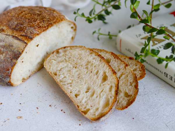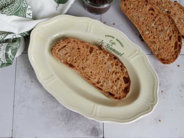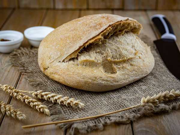 Первые 10/15 минут выпекаем хлеб под крышкой при максимальной температуре вашей духовки. Затем убрать крышку, снизить температуру до 200 градусов и выпекать хлеб «Тартин» на закваске еще примерно 30 минут.
