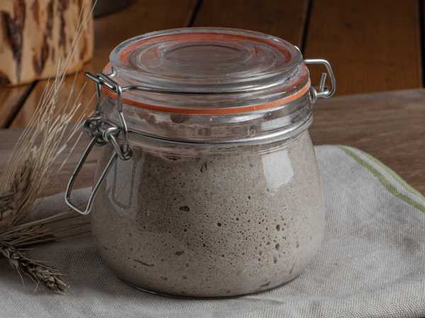 Пекла хлеб я на пшеничной закваске. В день замеса с утра я подкормила ее. Закваска должна быть сильной, так как именно сильная закваска сможет разрыхлить любое тесто и не будет его закислять. В ледяной воде развести 40 г пшеничной закваски уже на пике.