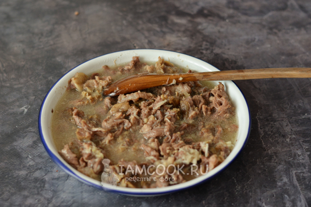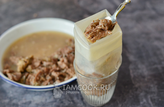 Если планируете, как я, использовать желатин, то заранее отлейте и остудите немного бульона и замочите в остывшем бульоне желатин на 20 минут.