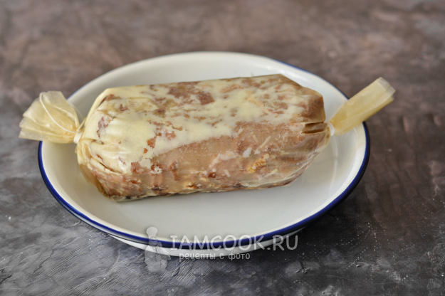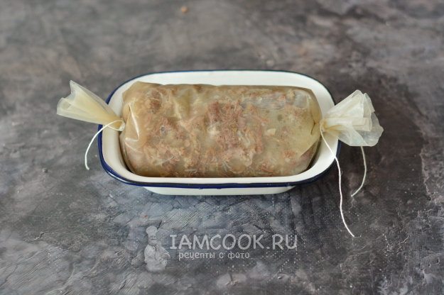 В таком виде отправьте сальтисон из говядины в холодильник на 8-12 часов для полного застывания и стабилизации.