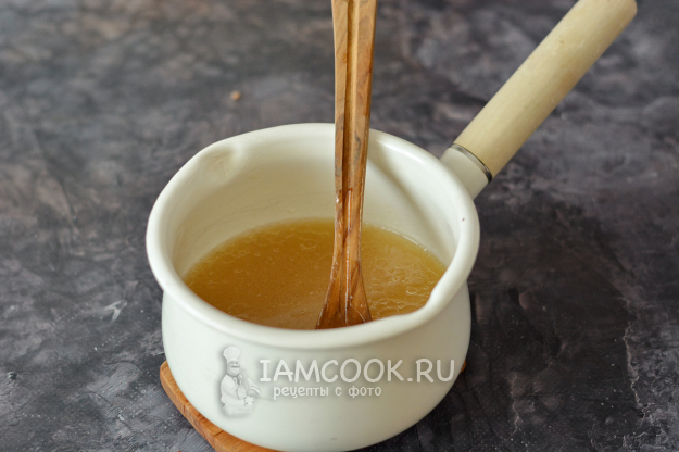Затем влейте растворенный желатин к оставшемуся бульону и подогрейте его до полного растворения желатина.