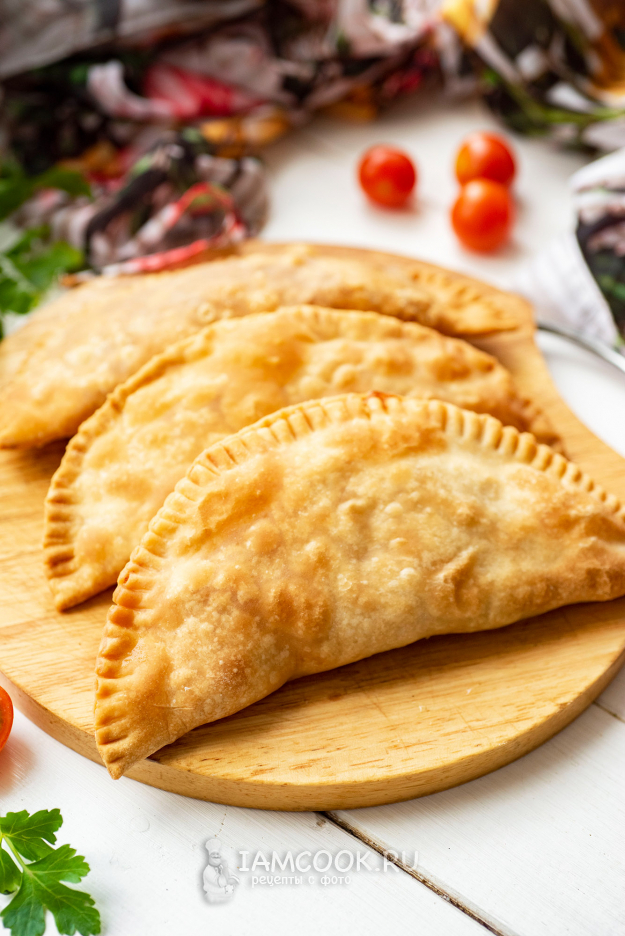 Готовые чебуреки подавайте к столу сразу же. Приятного аппетита!