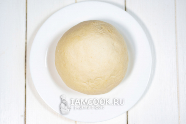 Все ингредиенты сначала перемешаем ложкой, а потом приступим к замесу руками. В итоге получается очень гладкое, мягкое и эластичное тесто. Тесто округлим, положим в пищевой полиэтиленовый пакет и оставим в покое на 15 минут.