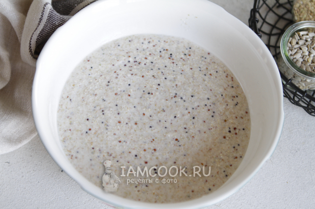 Для удобства крупы можно переложить в чашу блендера, влить теплую воду и на максимальных оборотах блендера измельчить все ингредиенты.