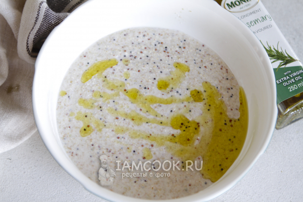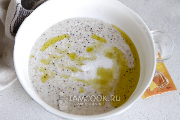 Добавить разрыхлитель для теста и соль. На этом этапе можно добавить еще любимые специи: сушеный чеснок, кориандр, итальянские травы. Все ингредиенты хорошо перемешать.