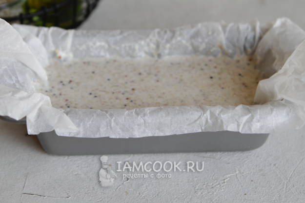 Для удобства форму можно застелить пергаментом. Выложить в нее тесто.