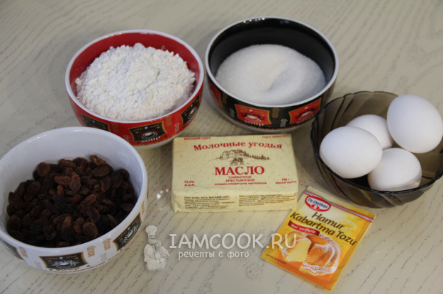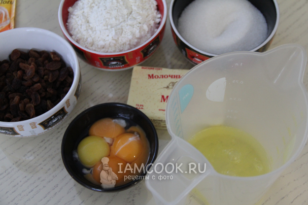 Соберите продукты для приготовления «Столичного» кекса в хлебопечке. Масло надо заранее размягчить при комнатной температуре.