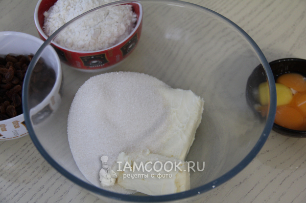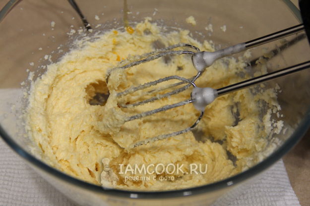 Взбить масло с сахаром с помощью миксера 2-3 минуты.